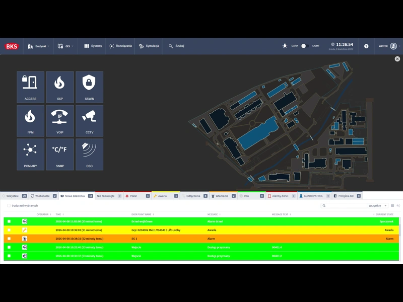 This is precisely where a PSIM system comes in. Such a platform does not replace every device in the building. It connects them into a single management environment, organises information, and helps people make better decisions under time pressure. One example of such a solution is GEMOS — a PSIM platform that integrates fire detection (SSP), CCTV, intrusion detection (SSWiN), voice alarm (DSO), BMS, and fire-protection automation — reducing response times and limiting the risk of human error.